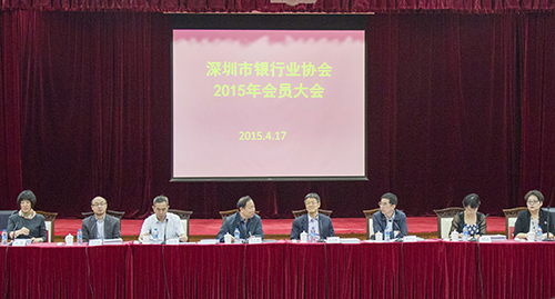 2015年4月17日,深圳市银行业协会在中国银行深圳市分行四楼大会议室召开了2015年会员大会。协会领导、理事单位以及近90家中外资金融机构负责人参加了会议。深圳银监局穆生明巡视员和市民政局孙景明副局长、市金融办林居正处长出席会议。